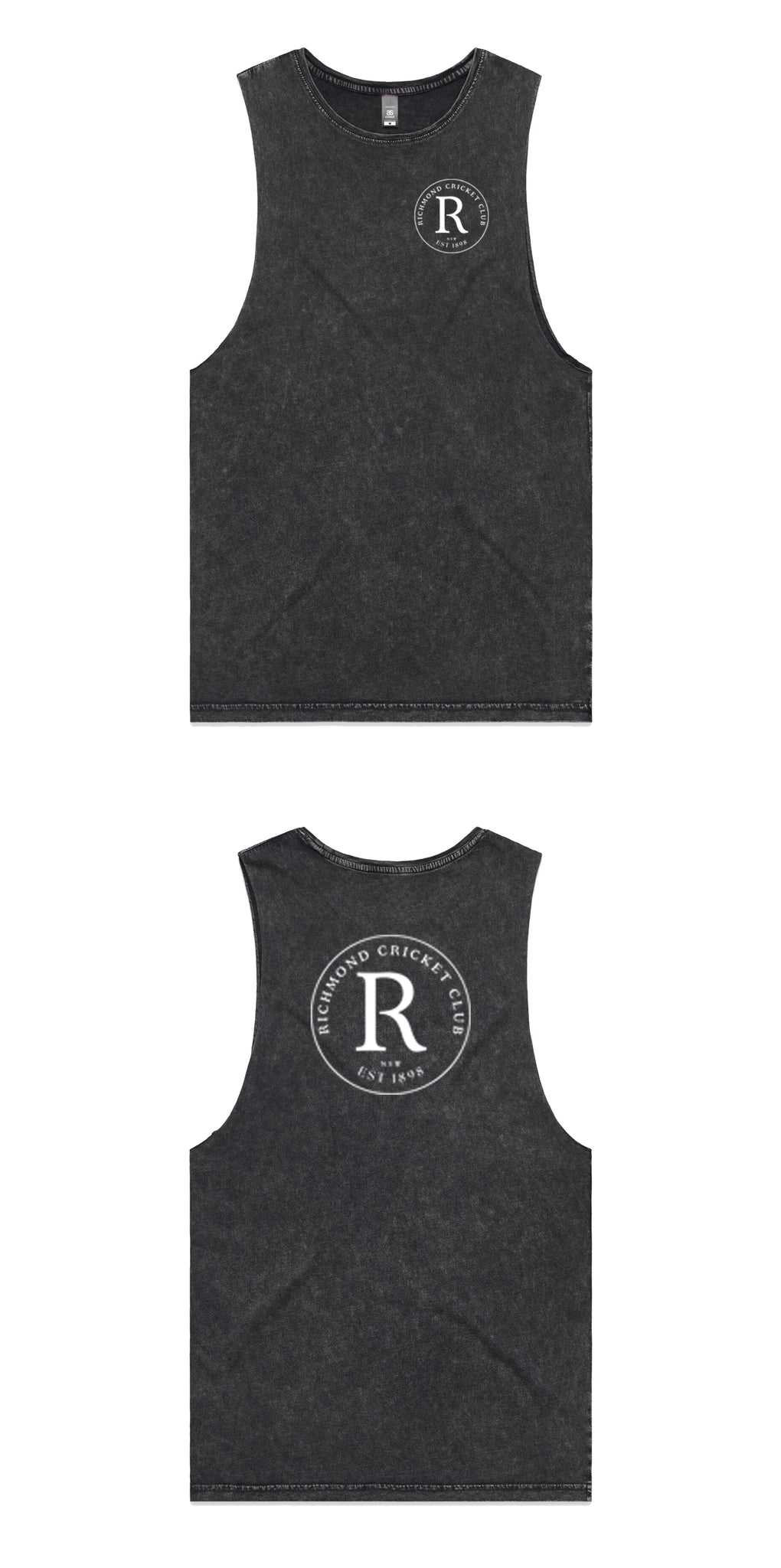 Construction: Sleeveless tank, raw armhole edges, stone wash finish with a worn look, ribbed crew neck, shoulder to shoulder tape, double needle bottom hem, preshrunk to minimise shrinkage